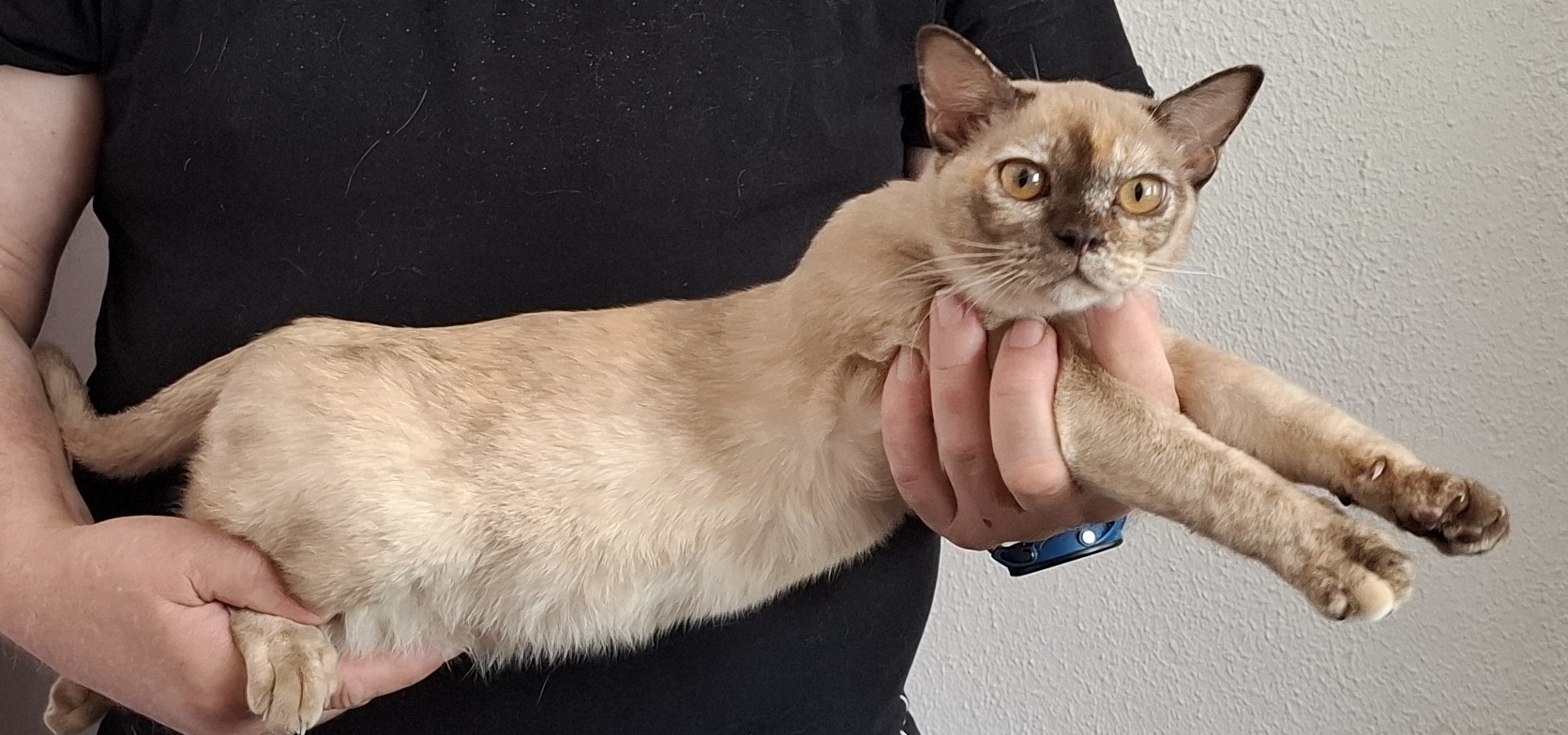 Uit die ontmoeting is onze Dottie geboren. Een lief chocolate tortie Burmeesje. Zij woont sinds begin juni 2025 bij ons. Is ze geen plaatje?